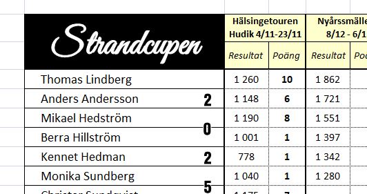 Efter Hälsingetouren kör vi Nyårssmällen. Kom ihåg att alla 8 serier räknas exkl. handicap. Resultat efter första starten: